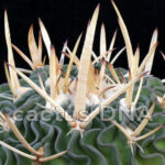 Mainly violet flowering form, dense wavy ribs, very strong flat black tipped spines of various lengths, some very long.